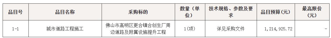 佛山市高明区更合镇合创生厂周边道路及附属设施提升工程采购项目的潜在供应商应在广东省政府采购网https://gdgpo.czt.gd.gov.cn/获取采购文件,并于 2025年12月16日 09时30分 (北京时间)前提交响应文件。