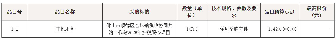 采购包1(佛山市顺德区杏坛镇税收协同共治工作站2026年护税服务项目):