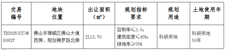 五、有意参与竞买者可登录网上交易系统下载TD2025(CC)WG0027地块的《佛山市禅城区国有建设用地使用权网上挂牌出让文件》。