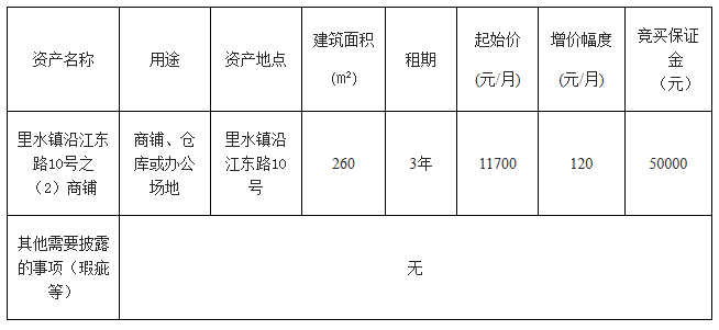 4.产权证照情况:有产权证照(竞买人应充分考虑其风险,一经存入竞买保证金即表示承认、接受本项目的现状,愿意按约定支付租赁价款和遵守租赁合同的约定)。