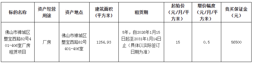 4.产权证照情况:有产权证照(竞买人应充分考虑其风险,一经存入竞买保证金即表示承认、接受本项目的现状,愿意按约定支付租赁价款和遵守租赁合同的约定)。