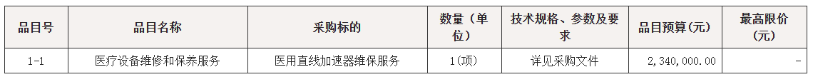 医用直线加速器维保服务招标项目的潜在投标人应在广东省政府采购网https://gdgpo.czt.gd.gov.cn/获取招标文件,并于 2025年12月31日 09时00分 (北京时间)前递交投标文件。