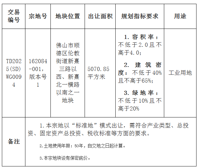 五、有意参与竞买者可于2025年12月15日后登录网上交易系统下载TD2025(SD)WG0094地块的《佛山市顺德区国有建设用地使用权网上挂牌出让文件》。