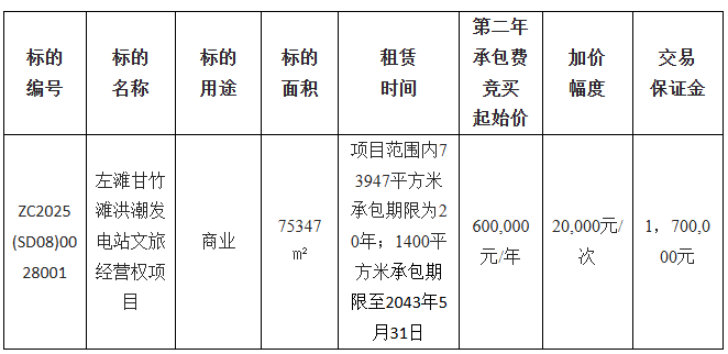 佛山市顺德区龙成投资有限公司采用网上竞价方式发包位于龙江镇左滩甘竹滩洪潮发电站文旅经营权,欢迎符合资格的竞买人参与竞价。