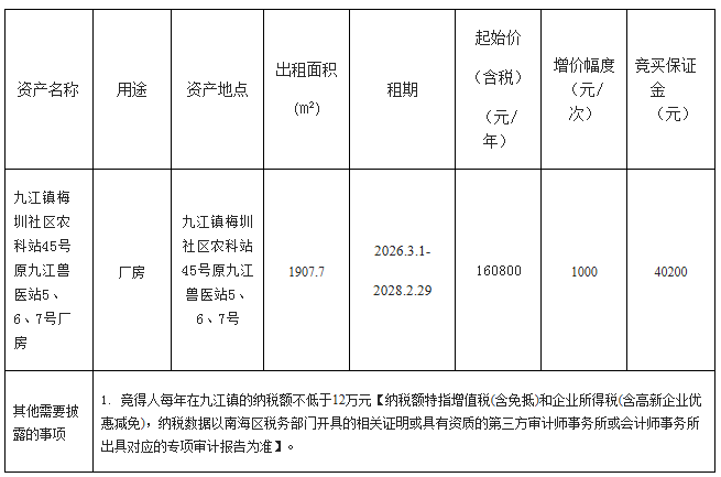 1.招/出租人:佛山市南海区九江镇镇有资产管理有限公司