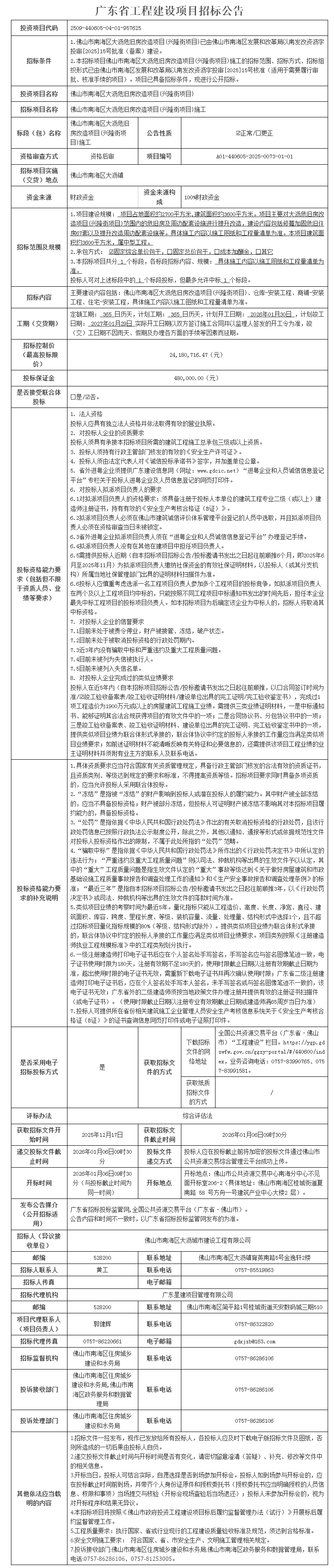 佛山市南海区大沥危旧房改造项目(兴隆街项目)施工招标公告