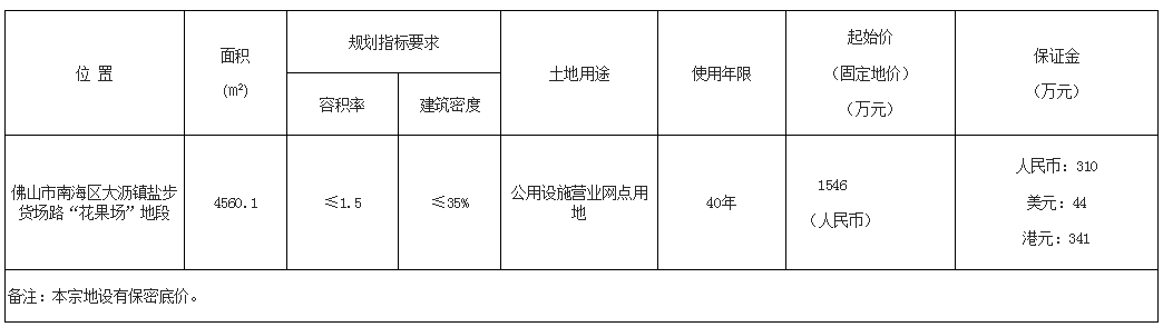 佛山市南海区国有建设用地使用权拍卖出让公告