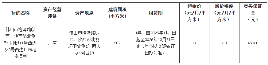2.佛山市公共资源交易中心南海分中心通过佛山市资产交易网上交易系统及粤公平网站发布的项目信息(包括但不限于公告信息、交易文件、合同条款等)并不构成佛山市公共资源交易中心南海分中心对项目的任何交易建议。意向竞买人应不依赖于已披露的项目信息并自行对项目的相关情况进行必要的尽职调查和充分了解,对是否竞买该项目及项目成交后可能发生的费用和存在的风险自行作出充分评估,并独立承担所有风险。意向竞买人一经申请参加竞买,即视为知晓、认可项目现状,佛山市公共资源交易中心南海分中心对此不承担任何法律责任。