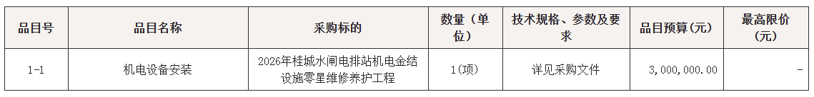 采购包1(2026年桂城水闸电排站机电金结设施零星维修养护工程):