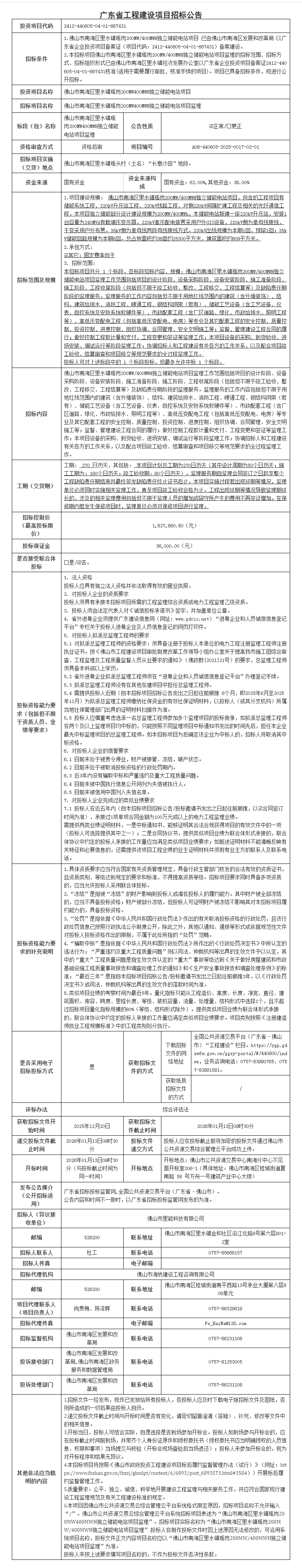 粤港澳大湾区—佛山市南海区电力管廊(一期)项目—佛山220千伏沥中输变电线路配套电力管廊建设工程施工(一标)招标公告