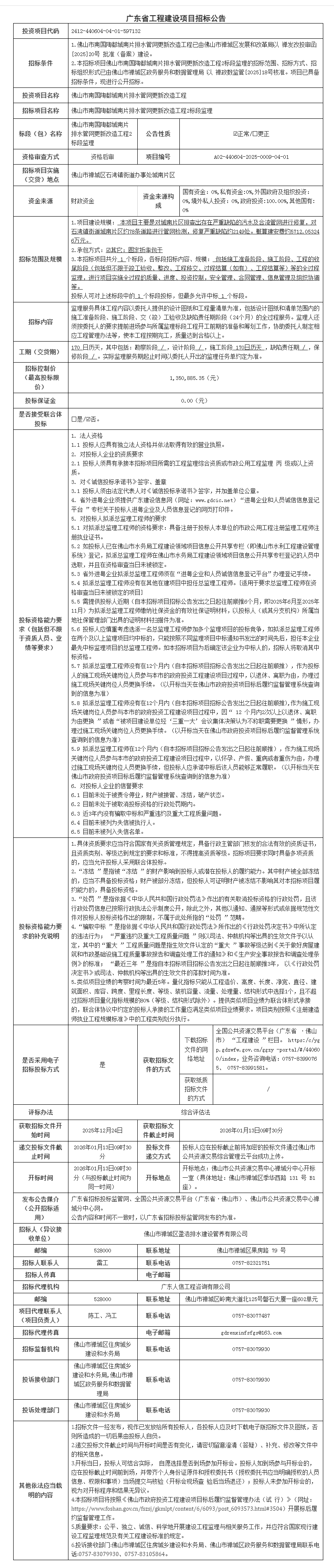 佛山市中心城区排水防涝能力提升项目(桂城片区)—桂城街道石啃片区排水管网改造工程(桂澜路以西片区)监理招标公告