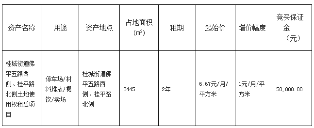 2.佛山市公共资源交易中心南海分中心通过佛山市资产交易网上交易系统及粤公平网站发布的项目信息(包括但不限于公告信息、交易文件、合同条款等)并不构成佛山市公共资源交易中心南海分中心对项目的任何交易建议。意向竞买人应不依赖于已披露的项目信息并自行对项目的相关情况进行必要的尽职调查和充分了解,对是否竞买该项目及项目成交后可能发生的费用和存在的风险自行作出充分评估,并独立承担所有风险。意向竞买人一经申请参加竞买,即视为知晓、认可项目现状,佛山市公共资源交易中心南海分中心对此不承担任何法律责任。