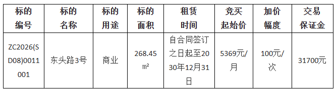 3.竞买人存在拖欠出租人租金情况的,须在报名截止前缴清所欠租金及罚金,方可参与本次竞买;