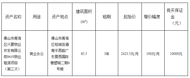 佛山市南海区兴夏物业开发有限公司B415物业租赁项目(第三次)