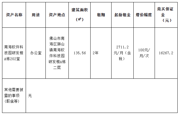 概述:广东杏晖投资控股集团有限公司委托采用网上竞价方式出租位于佛山市顺德区杏坛镇鱼苗场东村分场之2的使用权,欢迎符合资格的竞买人参与竞价......