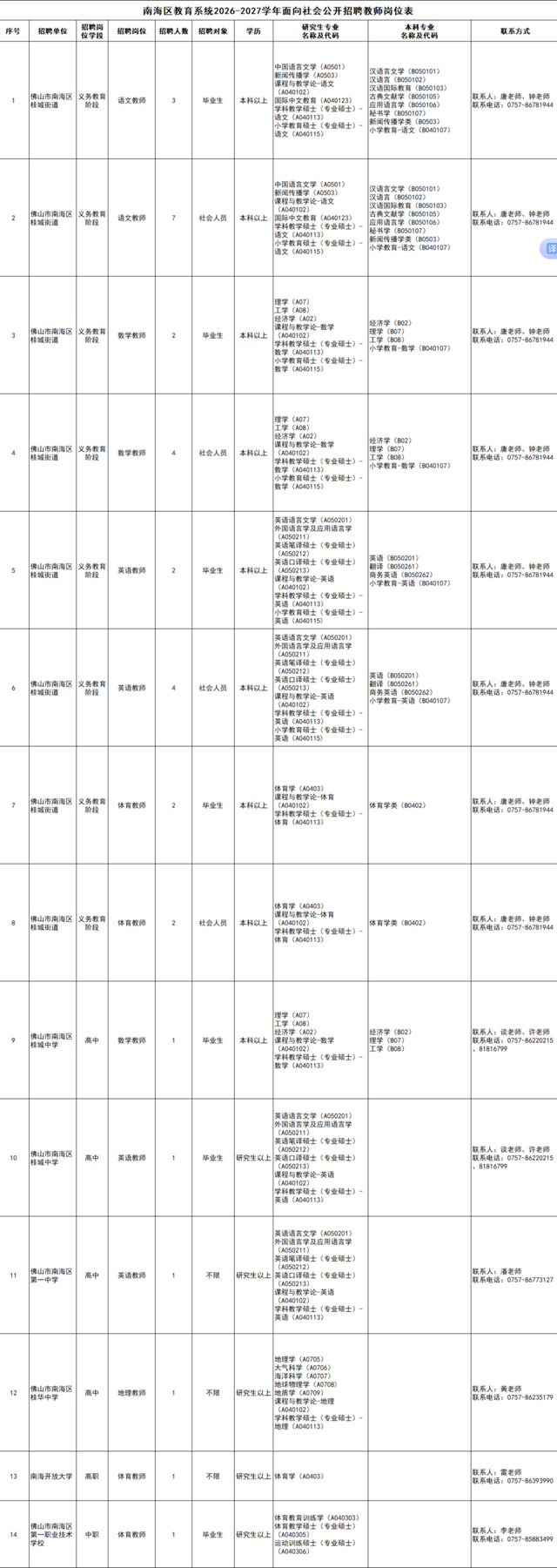 具体招聘事项请登录南海区政府网站查看招聘公告(http://www.nanhai.gov.cn/fsnhq/bmdh/zj/dlz/xxgkml/tzgg/content/post_7129925.html)。
