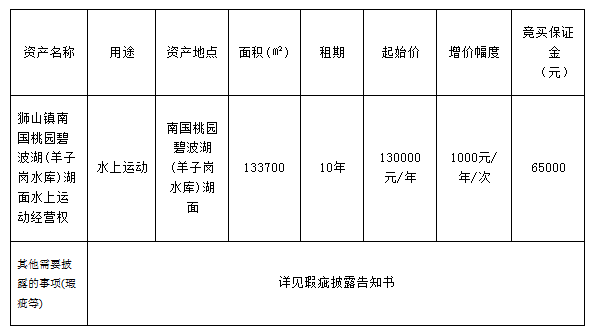 5.南国桃园碧波湖湖面归属于佛山市南海区狮山南国桃园管理有限公司负责日常管理,竞得人竞得资产后,竞得人需与出租方签订租赁合同。