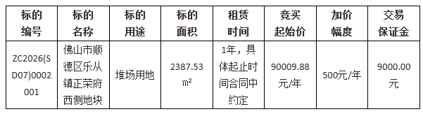 1.项目名称:佛山市顺德区乐从镇正荣府西侧地块公开招租