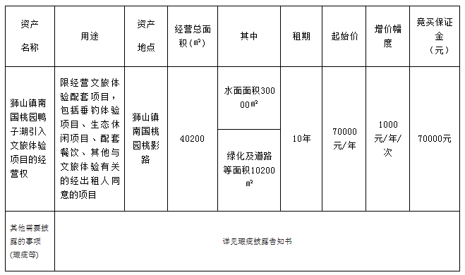 南海狮山镇南国桃园鸭子湖引入文旅体验项目的经营权项目