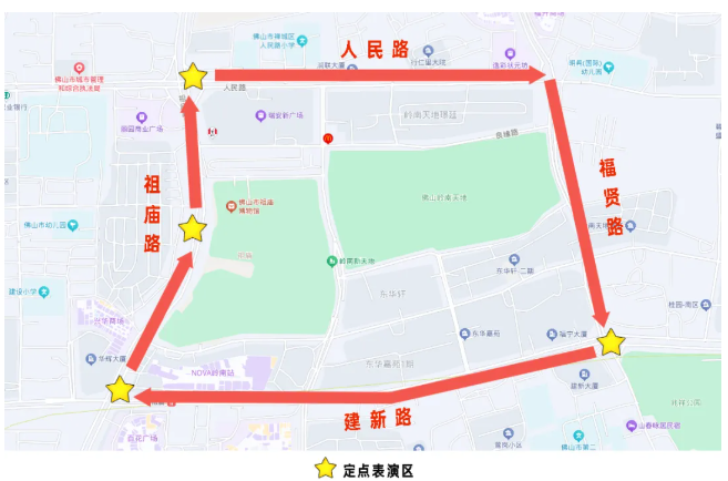 路线:祖庙正门——祖庙路——人民路——福贤路——建新路——祖庙路——祖庙正门