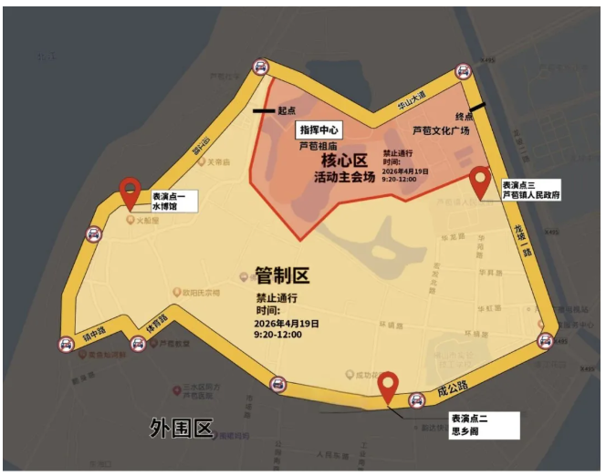 4月19日9时30分至巡游结束,禅城公安将根据巡游队伍行进情况分段适时实施管控。