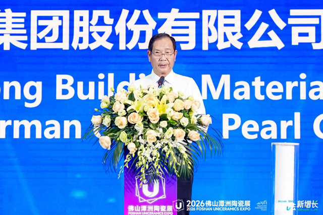 广东建筑材料行业协会会长、新明珠集团董事长叶德林致辞,他表示,当前陶瓷行业正处于转型升级的关键时期,面临着市场调整、需求升级的挑战,更有着绿色发展、数字化转型、国际化合作的重大挑战和机遇。而佛山潭洲陶瓷展,就是我们凝聚共识、共享资源、共促发展的核心载体。希望各位业界同仁能够借助本次展会,充分交流、深入合作,积极拥抱新趋势、新技术、新模式,坚守初心,深耕绿色发展,深耕国内市场、拓展国际市场,共同推动陶瓷产业高质量发展,让更多优质陶瓷走进千家万户、走向世界。