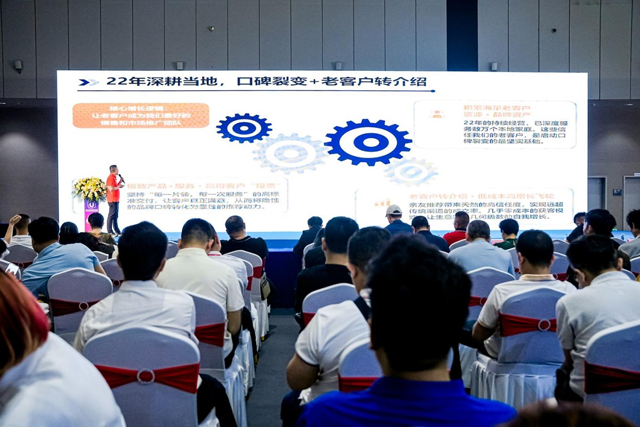 本次大会的重磅嘉宾——巨优优建材创始人宋海鹏先生,以“如何在县城做到第一”为题,带来了一场干货满满的实战分享。他深耕县域市场22年,从夫妻店起步,如今拥有7城8店,服务业主超10万,好评率98%。