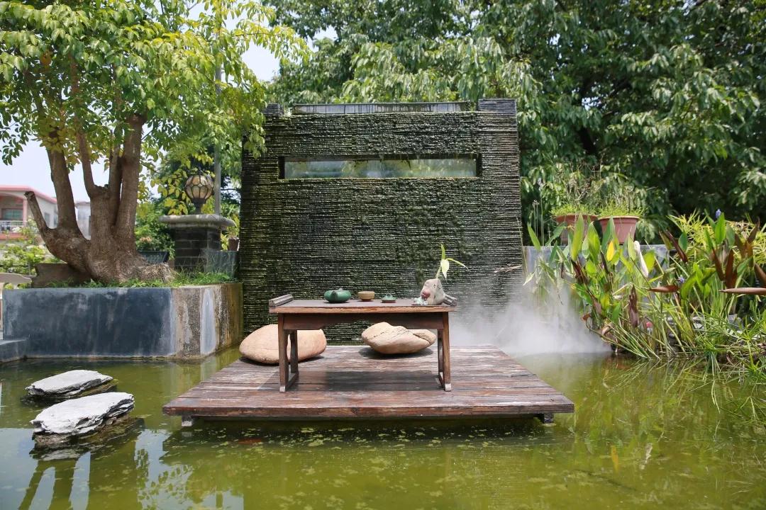 三层设6间带阳台的客房,分别以馆主祖父梁干初先生最喜爱的粤曲唱家小明星邓曼薇的歌曲命名,以浅啡和草绿为主色调的房间,有布艺的台灯、百叶竹帘、阳台推门外绿色的条木地和雪白的栏杆相映成趣。二楼与相邻平房楼顶连通为平台花园,供入住客人乘凉品茶和赏花观景。