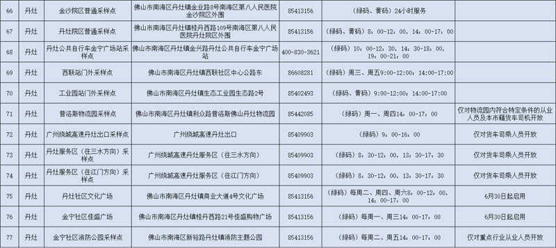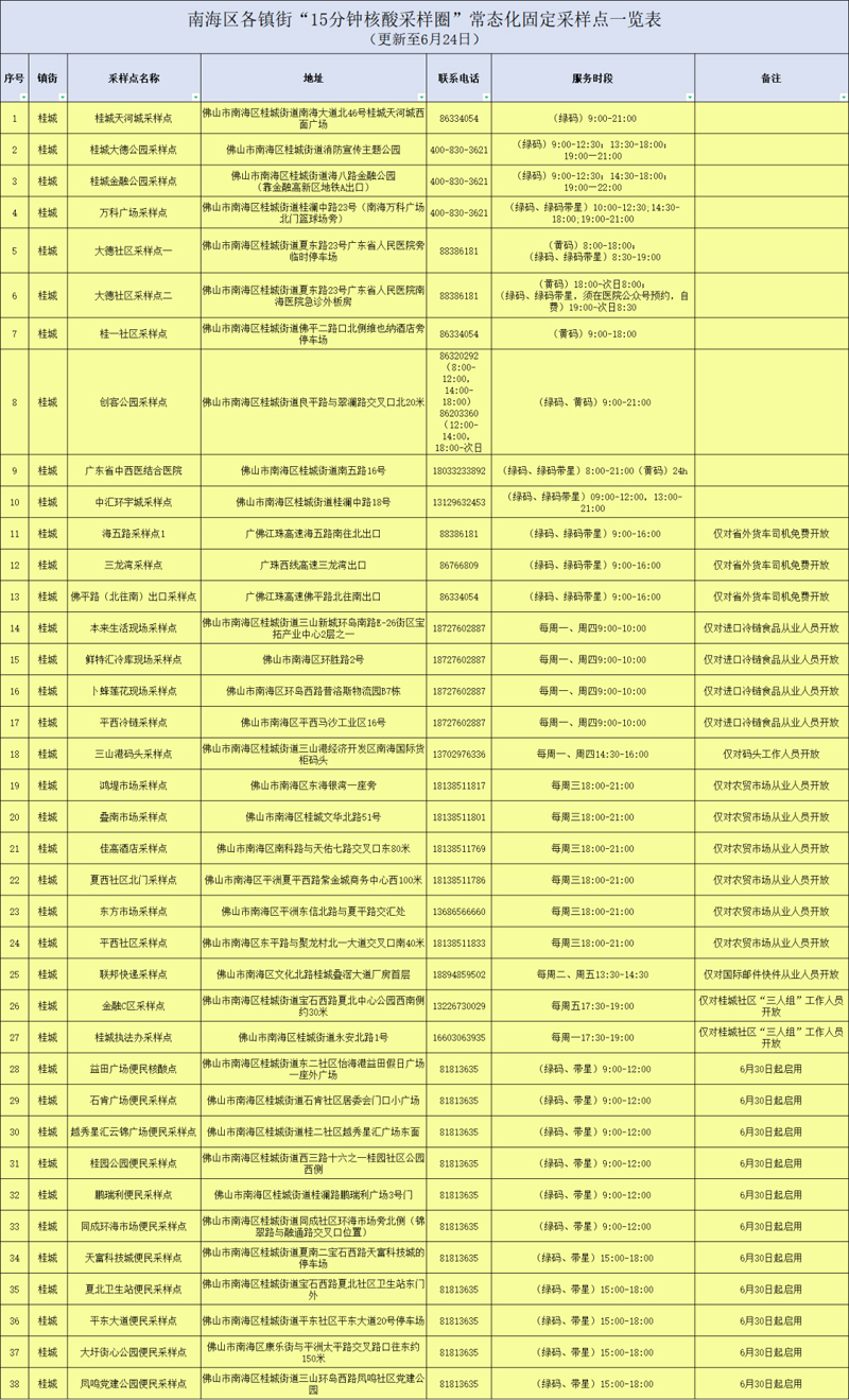 常态化固定采样点一览表(6月24日更新)