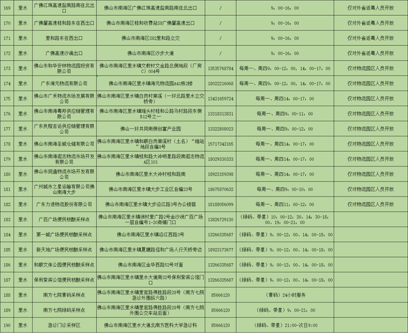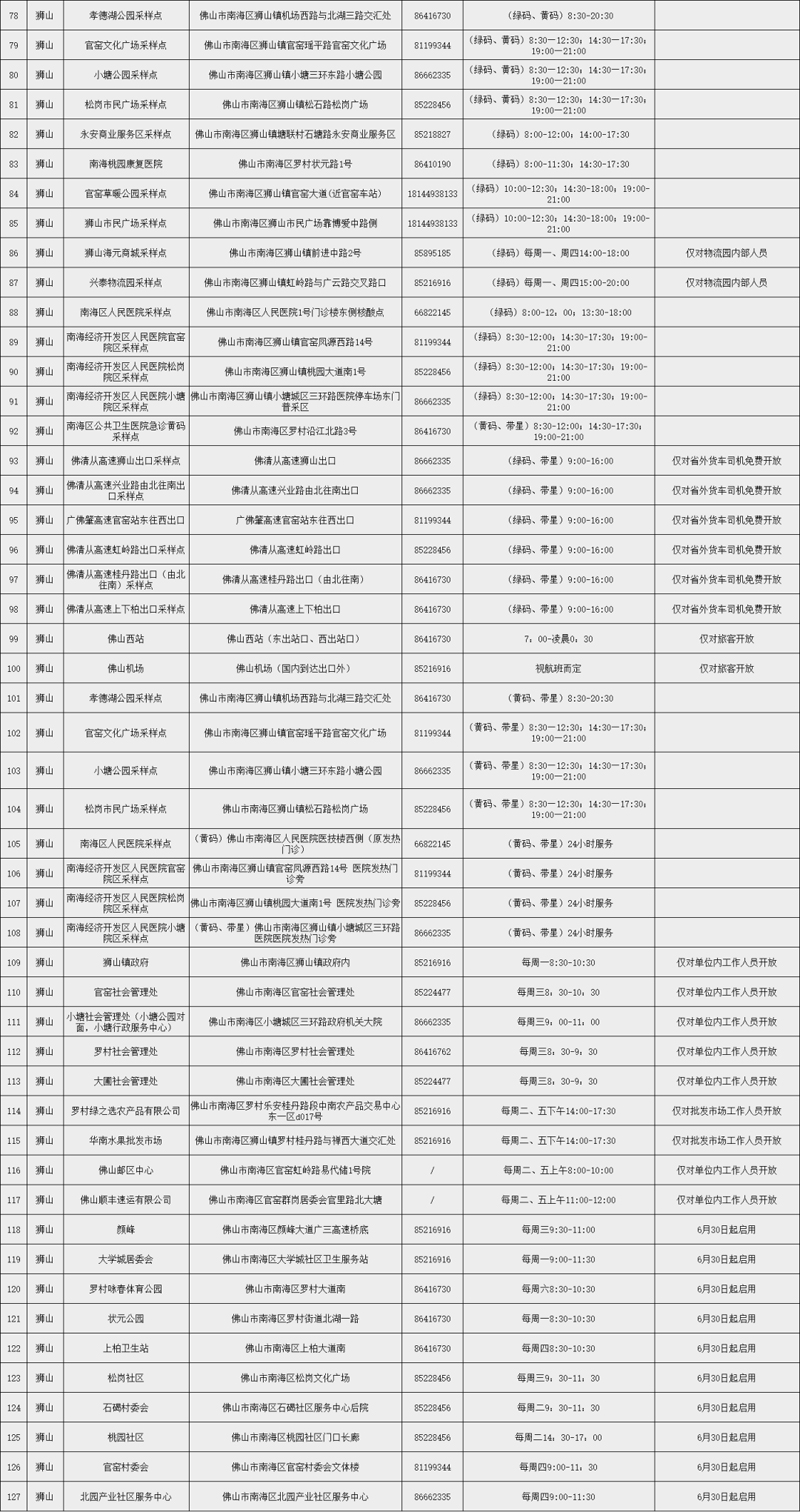 下一步我区将综合考虑采样点运行、检测需求等情况对采样点选址、开放时间等作动态调整(具体由各镇街发布,并实时更新至“南海区便民核酸采样点服务查询”小程序),逐步增配“采样屋”或“采样亭”,并提供团体检测预约服务(各镇街预约电话见附件),不断优化采样点布局和设置管理,为市民提供更加安全便捷的采样检测服务。