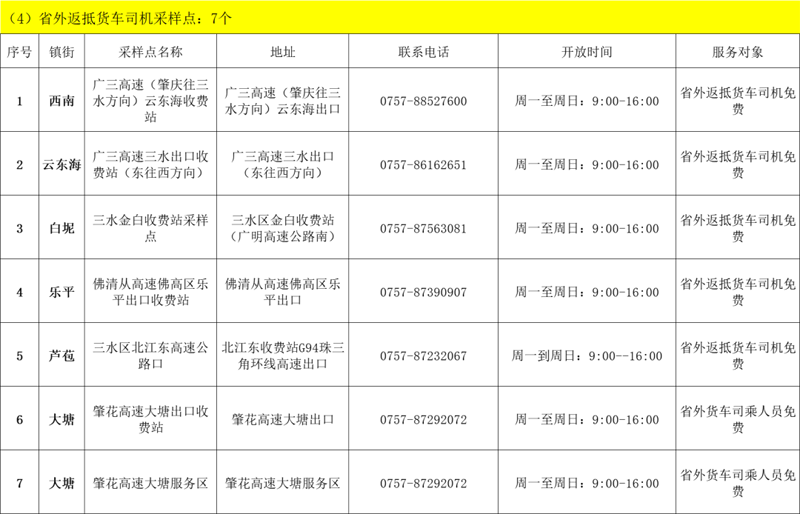 佛山市三水区新冠肺炎防控指挥办新冠病毒检测工作专班发布通告,为进一步提升新冠病毒核酸采样和检测能力,满足重点人群“应检尽检”、其他人群“愿检尽检”的常态化疫情防控要求,充分发挥核酸检测“排雷”作用和哨点监测预警作用,6月24日起,在全区7个镇街的医疗机构、大型商圈、农贸市场、交通站场、药店、居民区等设置常态化固定采样点81个,实现7个镇街核酸采样全覆盖,更大程度方便市民就近就便进行核酸采样,打造15分钟核酸采样圈工作。