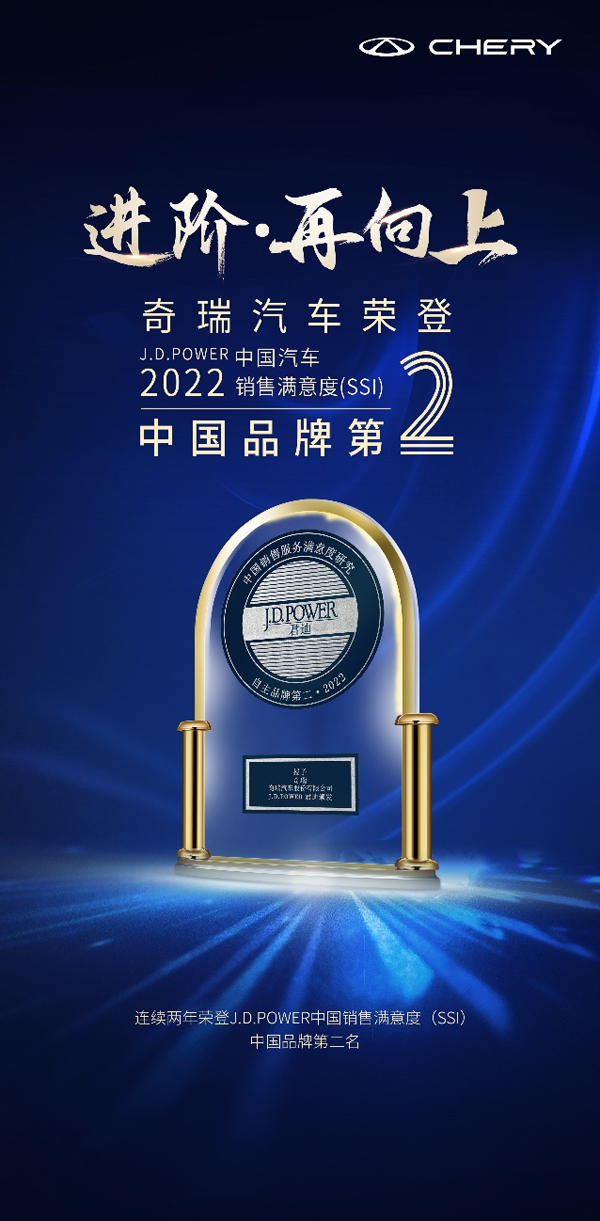 近日,全球领先的消费者洞察与市场研究机构J.D. Power(君迪)正式发布了“2022中国销售服务满意度研究(SSI)”,在2022自主品牌销售满意度排名中,奇瑞再次荣登第二名。