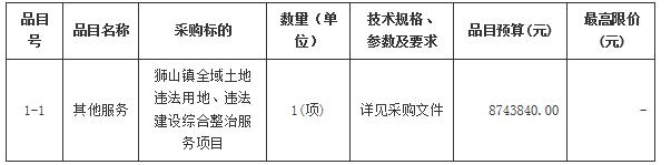 南海狮山镇全域土地违法用地、违法建设综合整治服务项目采购公告