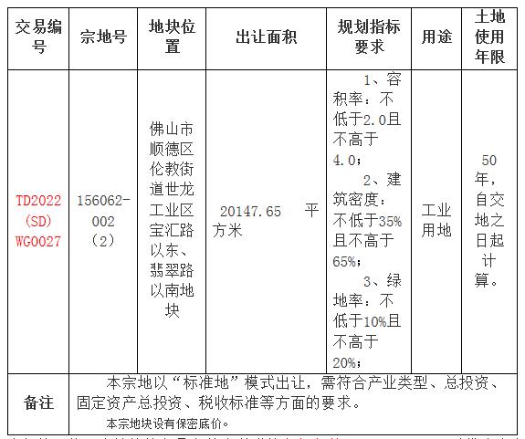 五、有意参与竞买者可于2022年6月29日后登录网上交易系统下载TD2022(SD)WG0027 地块的《佛山市顺德区国有建设用地使用权网上挂牌出让文件》。