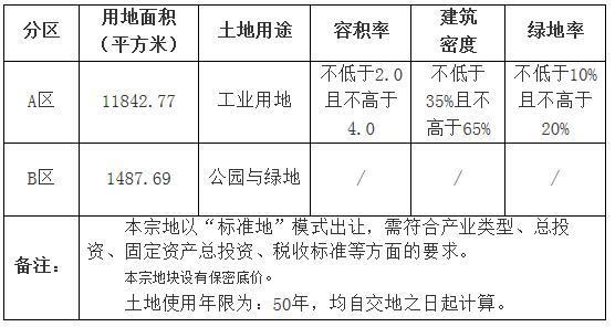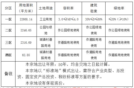 交易编号:TD2022(SD)WG0028;宗地图号:151062-007(1);地块位置:佛山市顺德区伦教街道世龙工业区宝汇路以西、均益北路以南之二地块;土地面积:13330.46平方米;各分区的用地面积和规划指标详见下表: