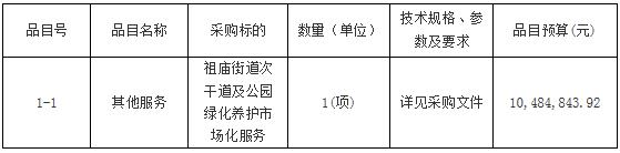 项目名称:祖庙街道次干道及公园绿化养护市场化服务