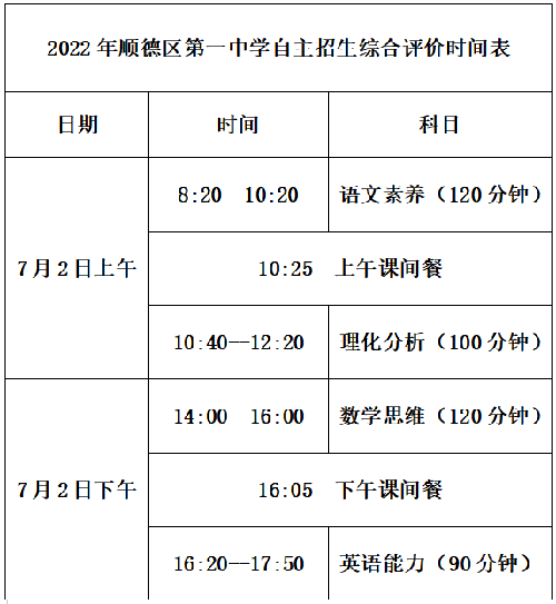 1. 综合评价时间:2022年7月2日(星期六)全天(入场时间为早上7:00-7:50);