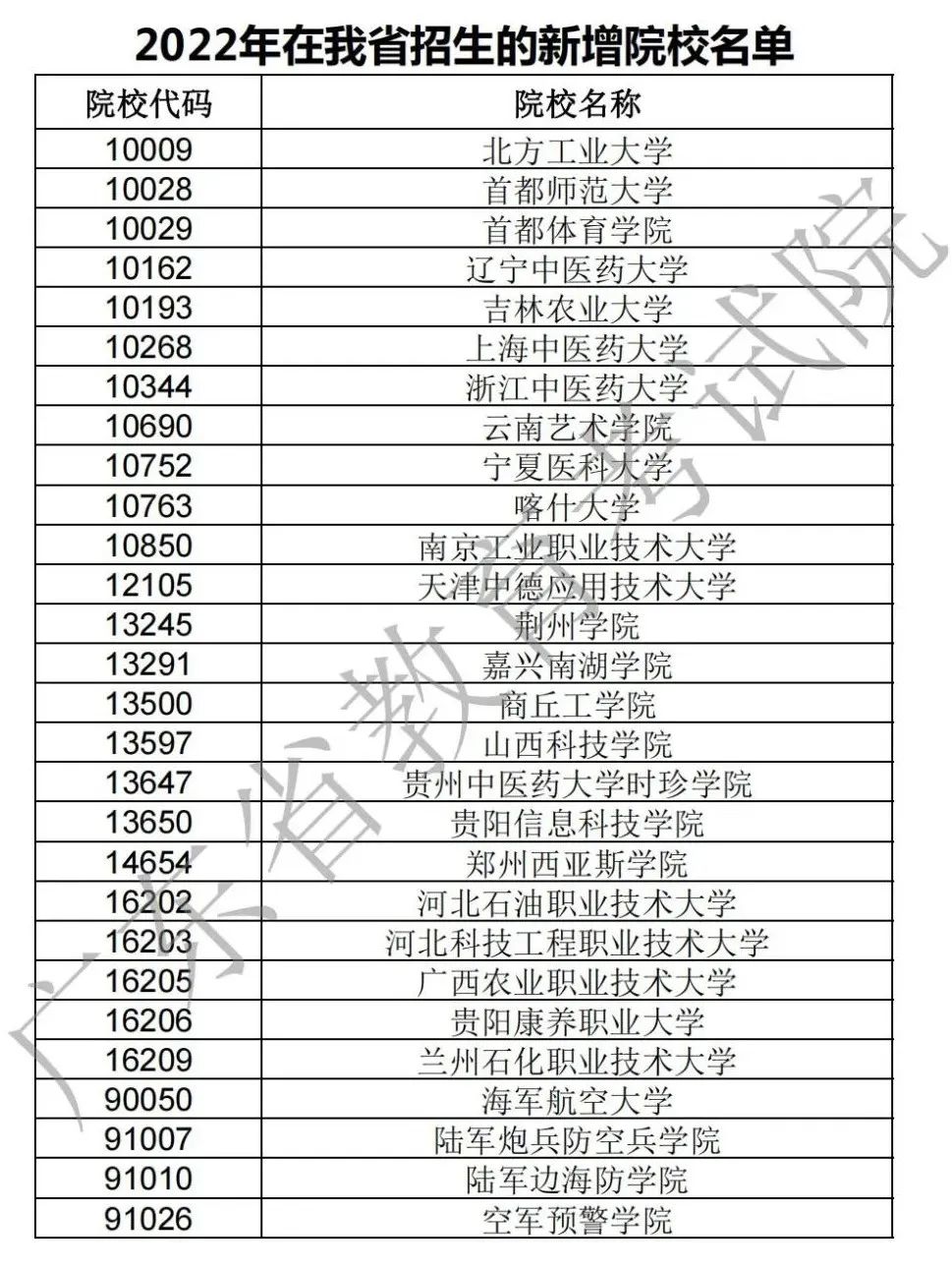 新增院校具体名单如下: