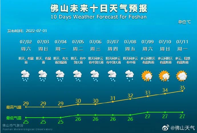 佛山未来10天天气预报。
